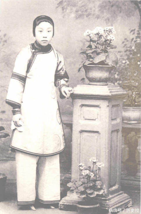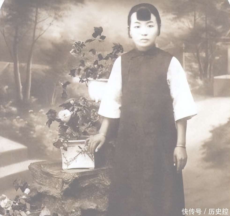 还有一张照片,展示了一位民国初年的青春少女。她的“三寸金莲”异常纤细,衣服质地上乘,发型流行,神态自然,皮肤白皙,气质清新。从她的装扮和气质来看,她应该是当时富贵人家的小姐。