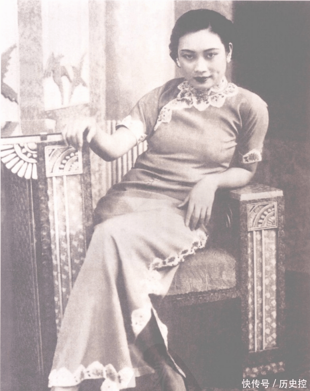 其中一张是20世纪30年代的民国美女。她头上和胸前佩戴着花饰,不知道是鲜花还是布花,身着新式旗袍,看上去优雅且高贵,仿佛一位高贵的女士。