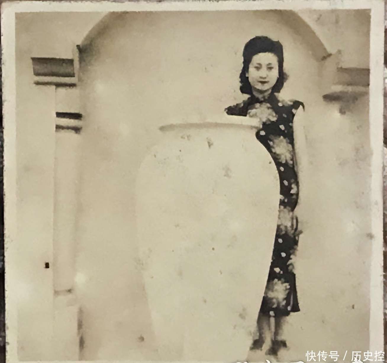 还有一位民国美女,身穿旗袍,站在一只大瓷瓶旁,身形曼妙,长相甜美,举手投足之间散发着贵妇人的优雅气质。